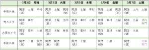 3月前半 担当医師 予定表 担当医師 2026/03/01 消内専門:消化器内視鏡専門医 (常勤医師は全員が専門医になります) 乳腺専門:乳腺専門医 完全予約制 (予約は常勤医師が外来で行います) 医師のご希望がある場合は、事前にクリニックにご確認下さい