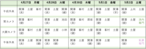 ゴールデンウィーク 担当医師 予定表 担当医師 2026/04/25 消内専門:消化器内視鏡専門医 (常勤医師は全員が専門医になります) 乳腺専門:乳腺専門医 完全予約制 (予約は常勤医師が外来で行います) 医師のご希望がある場合は、事前にクリニックにご確認下さい
